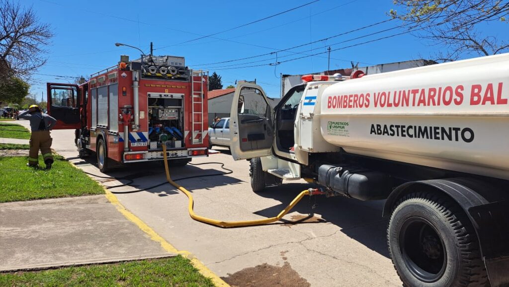 Bomberos Voluntarios de Balnearia intervinieron en un incendio de pastizales que se propagó hacia un vehículo en una vivienda ubicada en calle La Valle 67 de esa localidad.