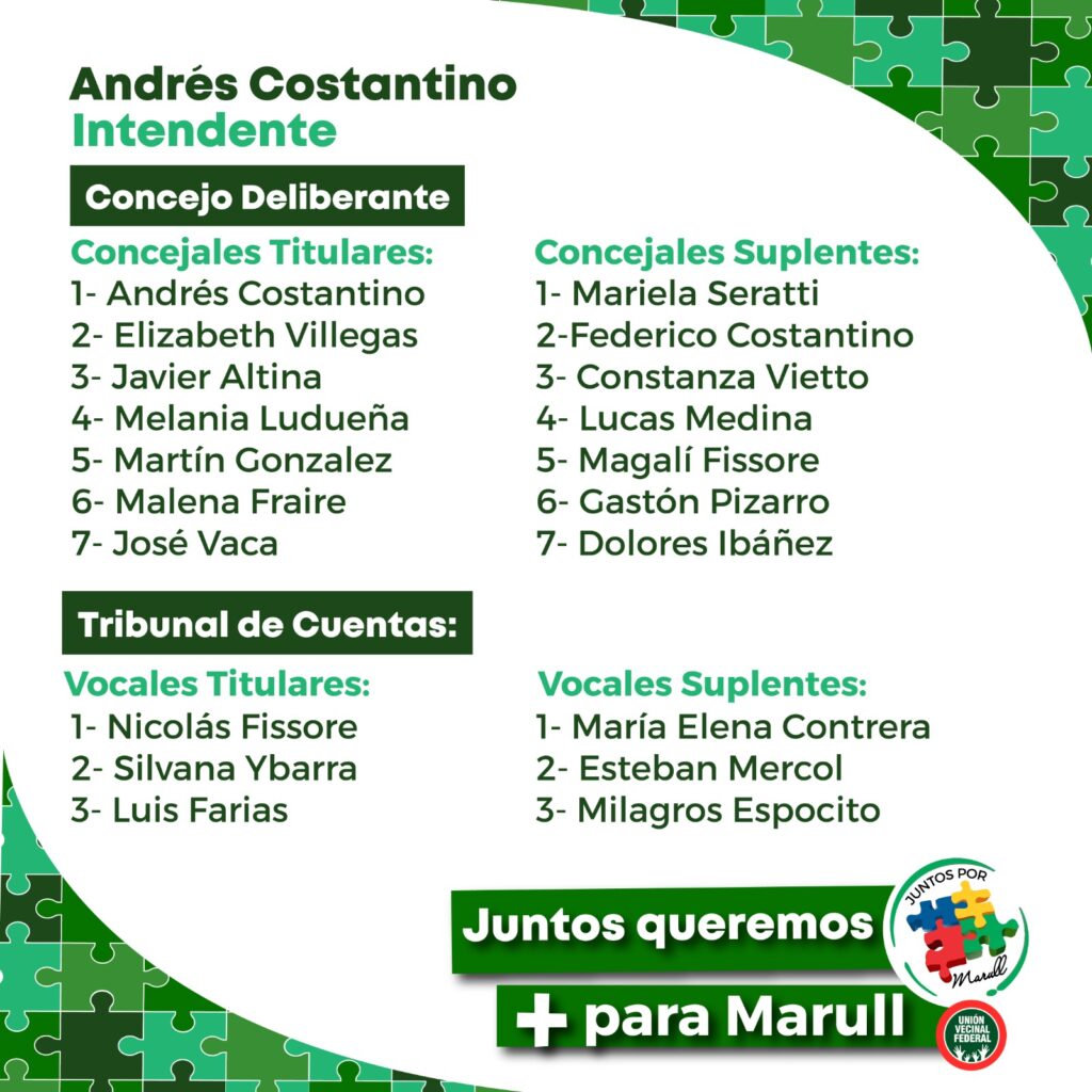 “Nuestra lista está encabezada por alguien a quien consideramos un par, un vecino más, un joven padre de familia, emprendedor y maestro. A Andrés, como a todo el equipo, lo definen sus ganas de empujar a Marull hacia un futuro próspero, de crecimiento y oportunidades”.