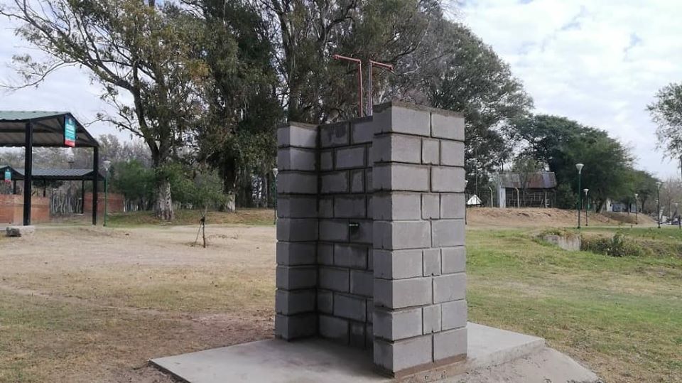 Se están realizando juegos de mesas y bancos para el disfrute de los vecinos en el Balneario Municipal. Al mismo tiempo se realizó una ducha doble.