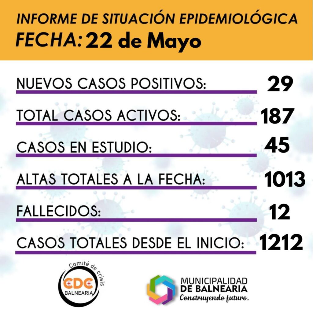 22 mayo, 2021El reporte de la mañana del sábado indica que la localidad llegó a los 187 casos activos y 45 en espera de resultado.
