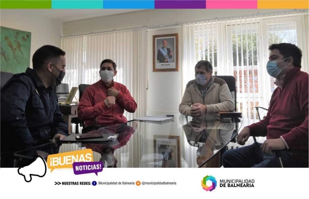 El intendente Miguel Méndez acompañado por el secretario de Gobierno, Lucas Palacios y el encargado del Área de Tránsito y Guardia Urbana, Pablo Moyano, recibieron en al Comisario Pablo Lencina, quien se encuentra por estos días a cargo de la Comisaria Distrito Balnearia.