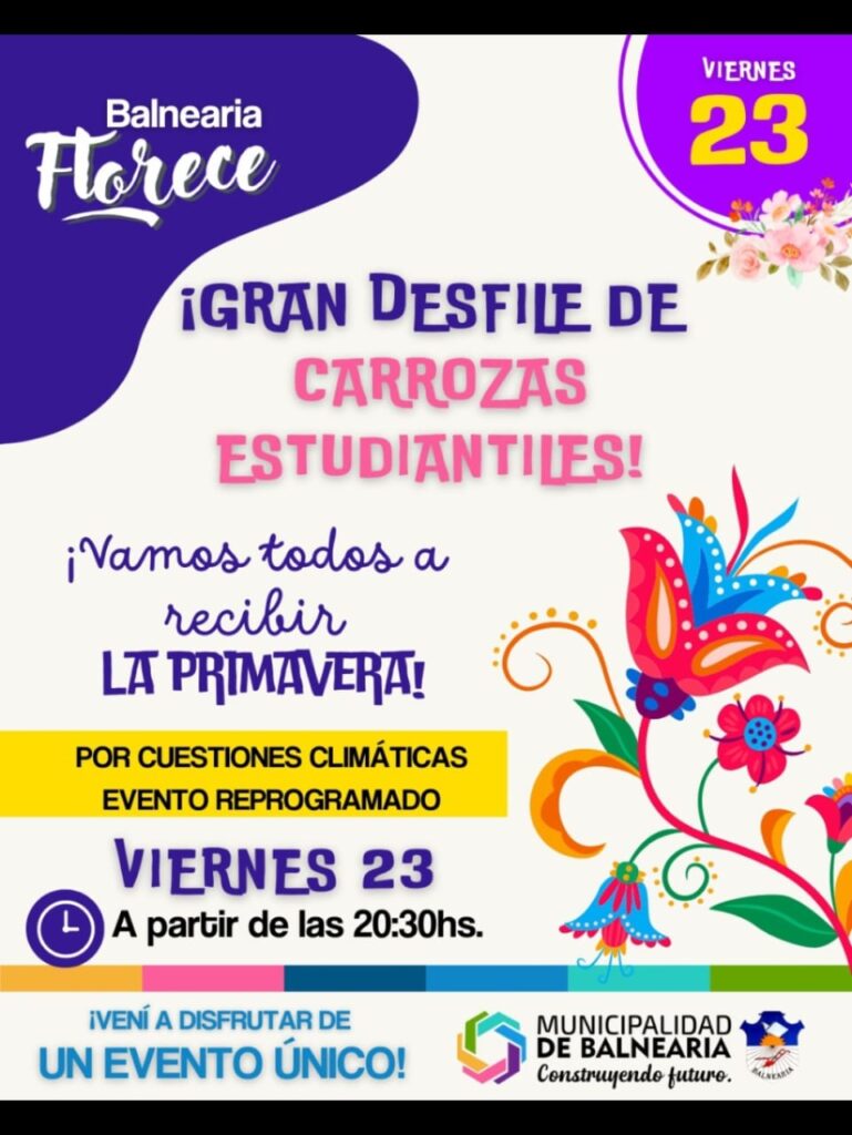 El clima jugó en contra y el desfile de carrozas elaboradas por alumnos de las escuelas de Balnearia y zona rural que estaba previsto para la noche de este miércoles, pasó para el viernes 23 de septiembre desde las 20.30 horas.
