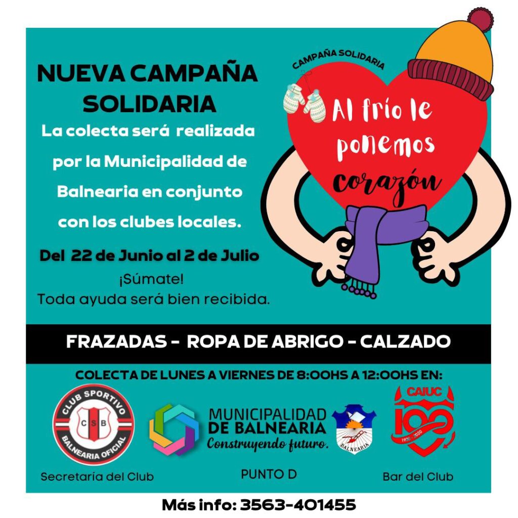 La Municipalidad de Balnearia en conjunto con los clubes locales, comienza una nueva colecta para ayudar a las familias que necesiten abrigo en estos días de frío que transitamos.