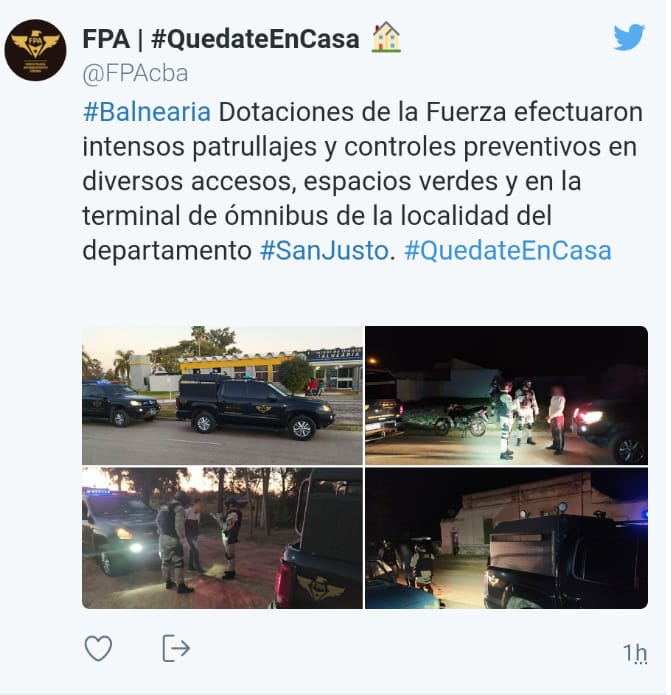 La presencia de los uniformados que en algunos casos procedieron al control de personas, generó comentarios en las redes sociales por parte de numerosos vecinos.
