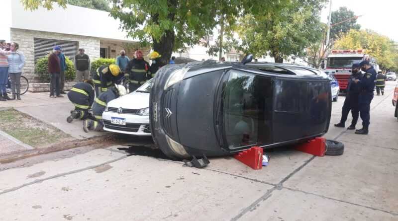 Un accidente con ribetes de espectacular ocurrió en la ciudad de Brinkmann cuando un automóvil Citroën C3 por causas que se investigan, impactó la defensa de un automóvil que estaba estacionado mientras un vecino cambiaba un neumático.