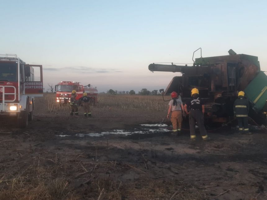 En la tarde de este jueves una cosechadora John Deere 9660STS tomó fuego y demandó la tarea de bomberos voluntarios de Morteros.