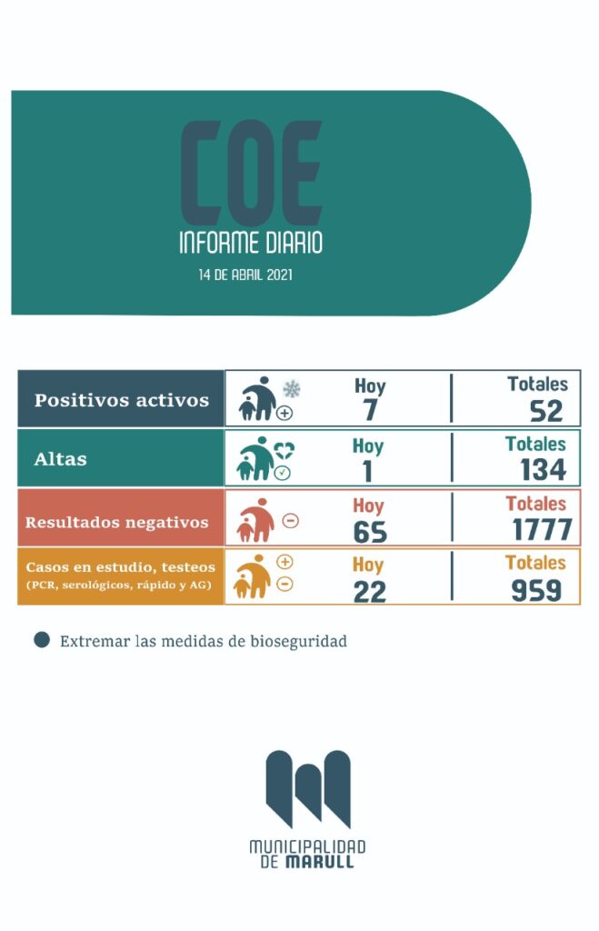 14 abril, 2021El ultimo informe indica la detección de siete nuevos infectados.