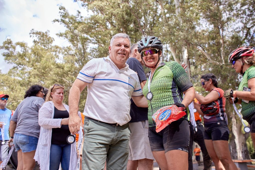 En el evento se realizó el reconocimiento al profesor Luis RInaudo que siempre estuvo colaborando y haciendo crecer el deporte de ciclismo en Arroyito, recibió el presente su hija, la profesora Julia Rinauado en su representación.