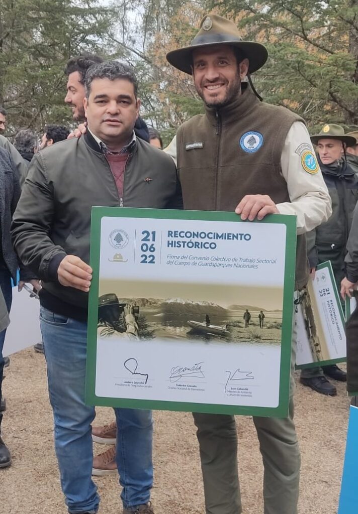 Encabezaron este Acto, el Ministro de Ambiente y Desarrollo Sostenible Juan Cabandié; Ministro de Trabajo, Claudio Moroni; Ana Castellani, Secretaria de Empleo Público y el Presidente de la Administración de Parques Nacionales, Lautaro Erratchú.