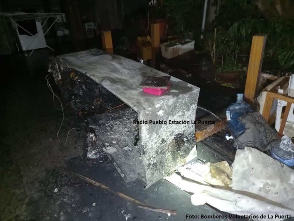 El fuego consumió por completo la cocina y parte de una galería de una vivienda ubicada en el centro de la localidad de La Puerta.