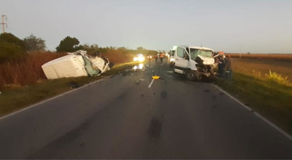 El siniestro se produjo en la ruta 19, a un kilómetro de esa población, por causas que se investigar. Participaron dos Mercedes Benz Sprinter, una transportaba dulce de batata y otra, productos de una droguería.