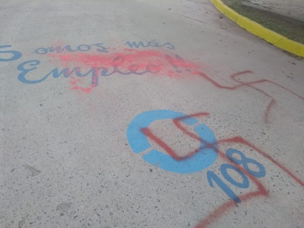 Para sorpresa de los vecinos de Río Primero, la Av. San Martín amaneció con pintadas de la cruz esvástica, características del régimen Nazi. “Por tal motivo, desde la gestión municipal se tomó la decisión de hacer público el asunto, más teniendo en cuenta que en nuestro país se escribieron páginas de horror debido a la intolerancia hacia el otro”, sigue el informe enviado a este medio.