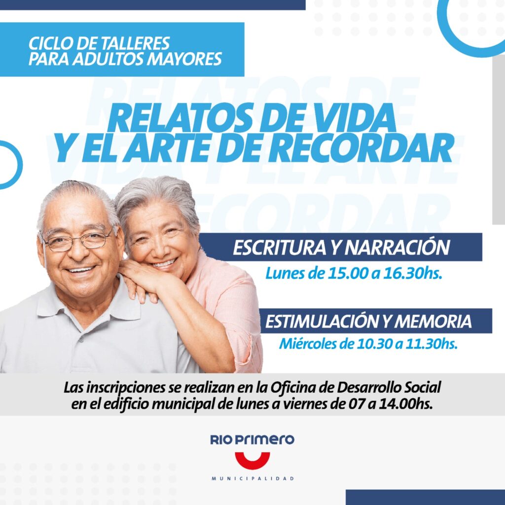 Río Primero: “Relatos de Vida” la Municipalidad lanza talleres para Adultos Mayores