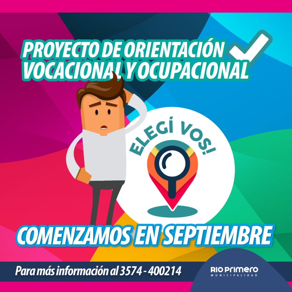 “Elegí Vos” comienza el 8 de septiembre. Un espacio propuesto desde el Equipo Interdisciplinario de la Municipalidad de Río Primero, con la finalidad de promover la orientación vocacional y ocupacional de jóvenes y adultos de la localidad.