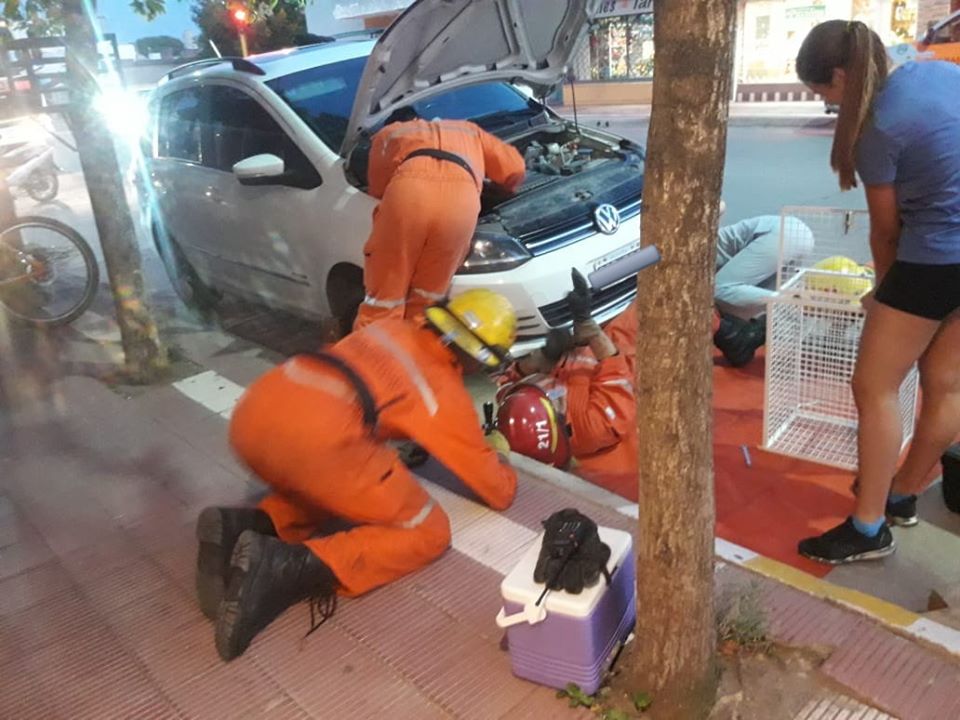 TIEMPO ARROYITO: BOMBEROS RESCATAN UN GATO ATRAPADO EN EL MOTOR DE UN AUTO