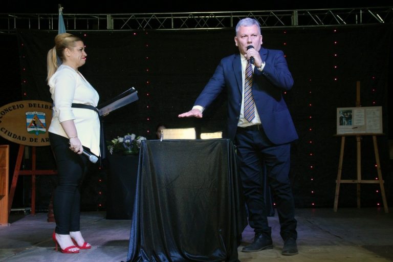 Gustavo Benedetti asumió como intendente de la ciudad de Arroyito, en un acto desarrollado el pasado jueves 12 de diciembre en el campo de deportes del Centro Vecinal Nicolás Batalla, de la zona sur.