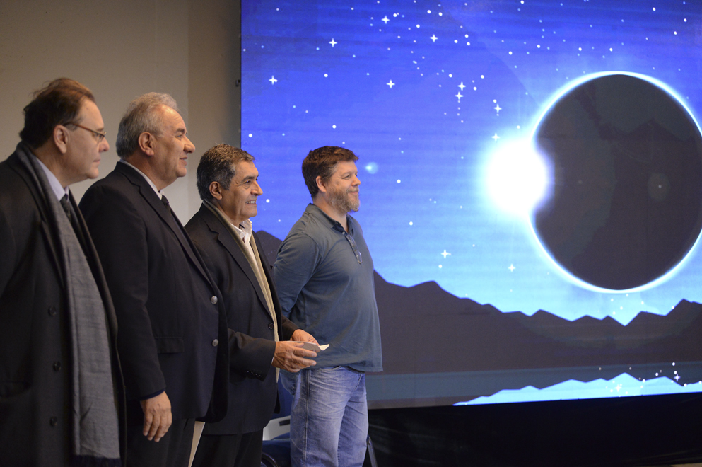 La presentación estuvo encabezada por el ministro de Ciencia y Tecnología, Walter Robledo, que inició la conferencia indicando que es “una buena oportunidad para aprovechar la circunstancia del eclipse, para hablar de ciencia, hablar de tecnologías, promover en nuestra juventud y en nuestra sociedad este interés y despertar las vocaciones por acercarse a leer y estudiar sobre el tema”.