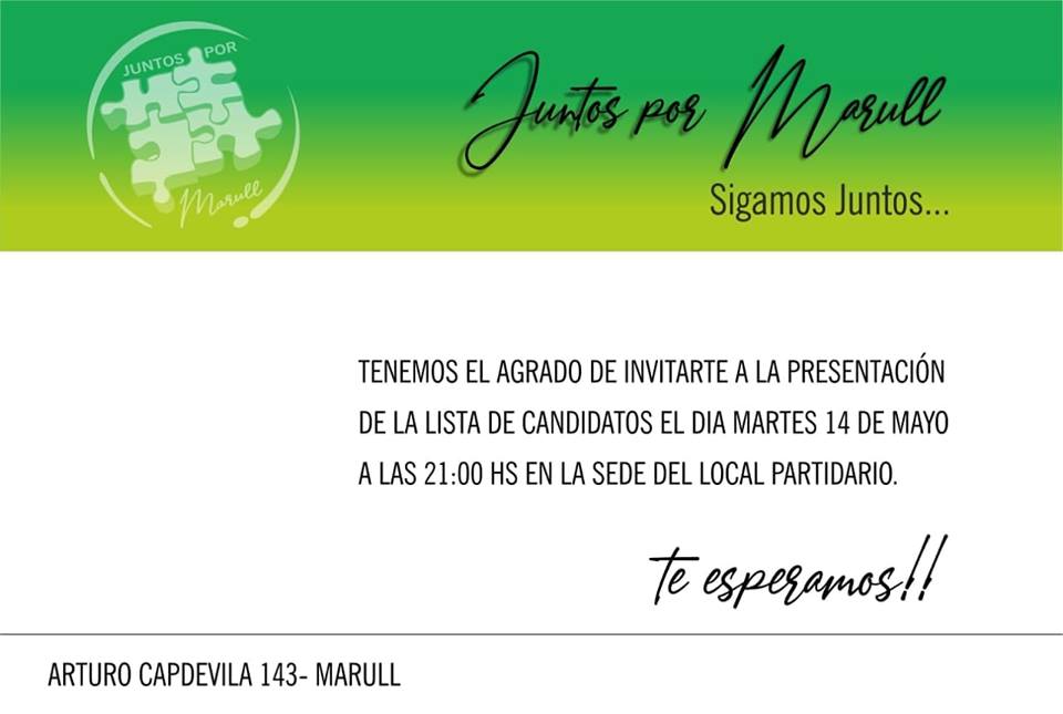 El intendente de Marull que ira por la reeleccion en las elecciones locales del proximo mes de junio, realizara el acto de lanzamiento de su candidatura en la noche de hoy martes.