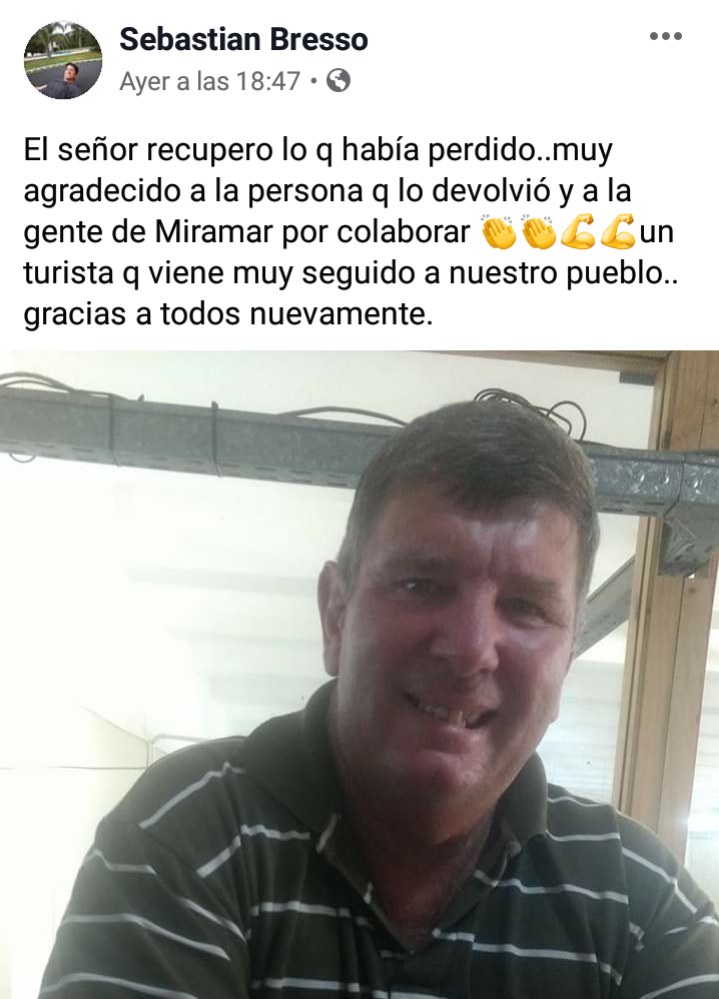 TIEMPO MIRAMAR: VECINA Y DUEÑOS DE UN SUPER DEVUELVEN DINERO EXTRAVIADO A UN TURISTA