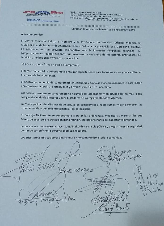 28 noviembre, 2019Se concretó esta semana en la localidad de Miramar de Ansenuza, una reunión junto con la Municipalidad, Concejales, Turismo, Policía y Centro Comercial para acordar acciones a llevar a cabo sobre la seguridad e integridad del pueblo. El evento tubo lugar como preparativo de la temporada alta de turismo que se avecina.