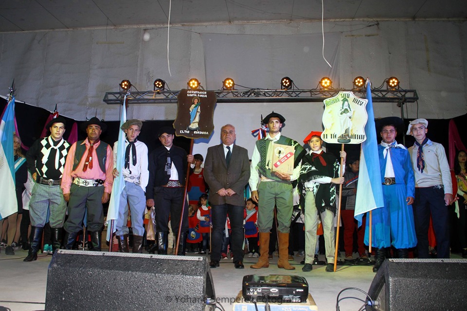 El himno nacional argentino estuvo a cargo de la Banda de Música Municipal y la Academia de folclore “El Tiyú”, llegó con todo su esplendor y alegría. No faltaron las palabras alusivas del Intendente, Fernando Rossi y el reconocimiento a las agrupaciones gauchas, Santa Teresa y Santa Lucía.