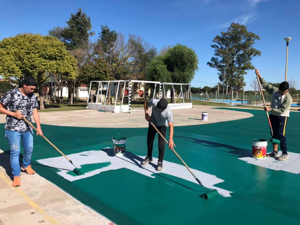 3 mayo, 2019Un grupo de jóvenes que practica Handball en el Polideportivo Municipal tomaron la iniciativa de mejorar el lugar donde realizan habitualmente sus actividades pintando el playón de la cancha.