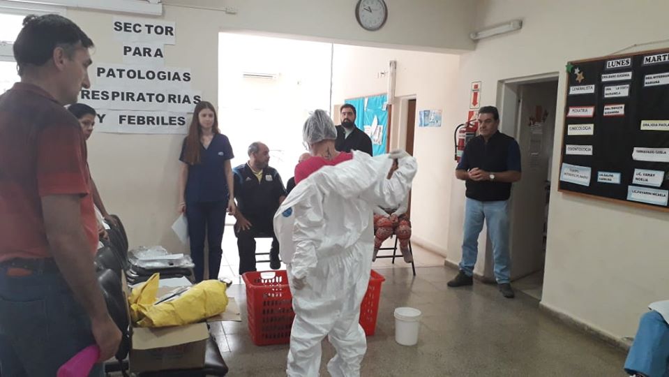 30 marzo, 2020El pasado fin de semana, el el intendente de Villa Santa Rosa, Serafín Víctor Kieffer acompañó al cuerpo de expertos del Centro de Salud Municipal en el simulacro y la preparación del protocolo de actuación pre hospitalario para casos sospechosos de COVID-19.