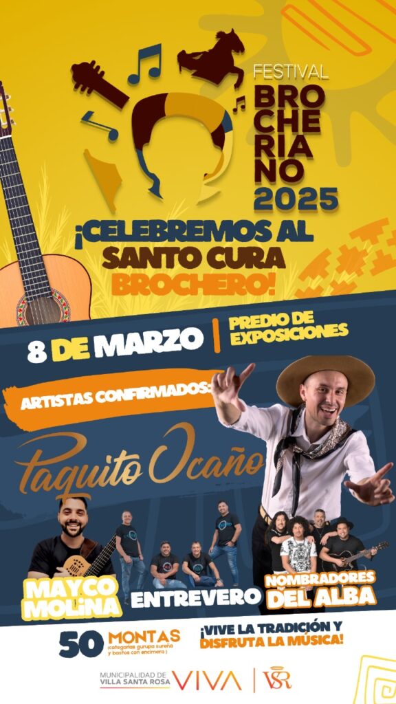 El sábado 8 de marzo será el Festival. Se celebra el 185° aniversario del nacimiento del Santo Cura Brochero.